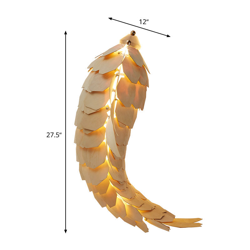 Wooden Fish Shaped Wall Lamp: Asian Style Single Bulb Beige Mount Lighting For Restaurants Wood