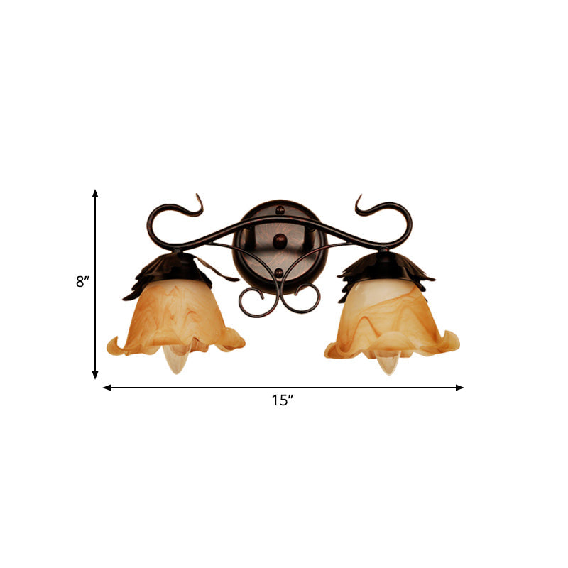 Modern Floral Yellow Glass Vanity Wall Sconce - Stylish 1/2/3-Light Black Finish Mount Lighting