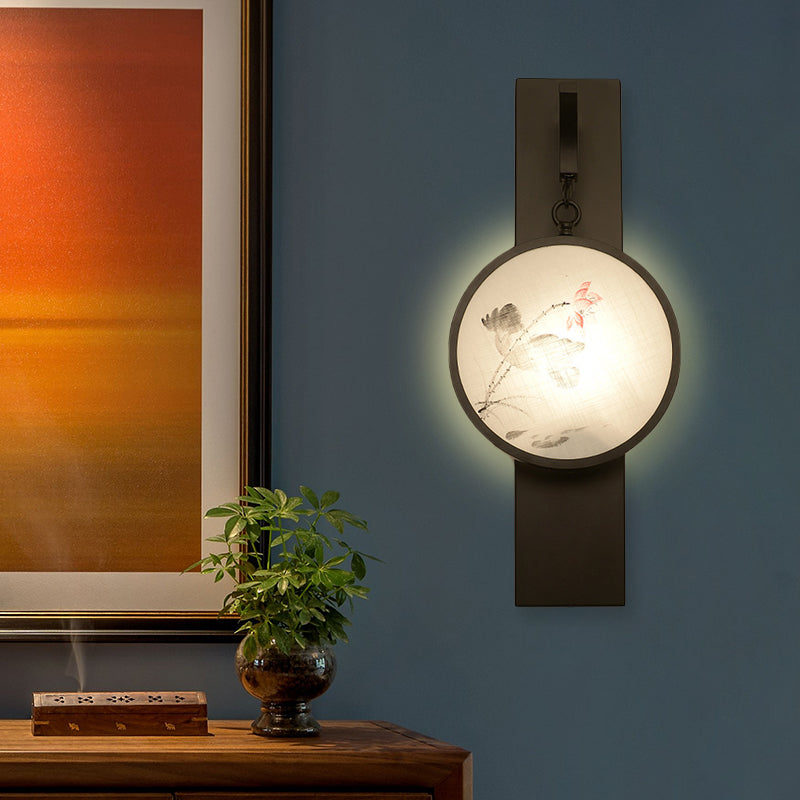 Chinese Fabric Tearoom Wall Mounted Lamp: Flower/Bird Led Mural Light In Black
