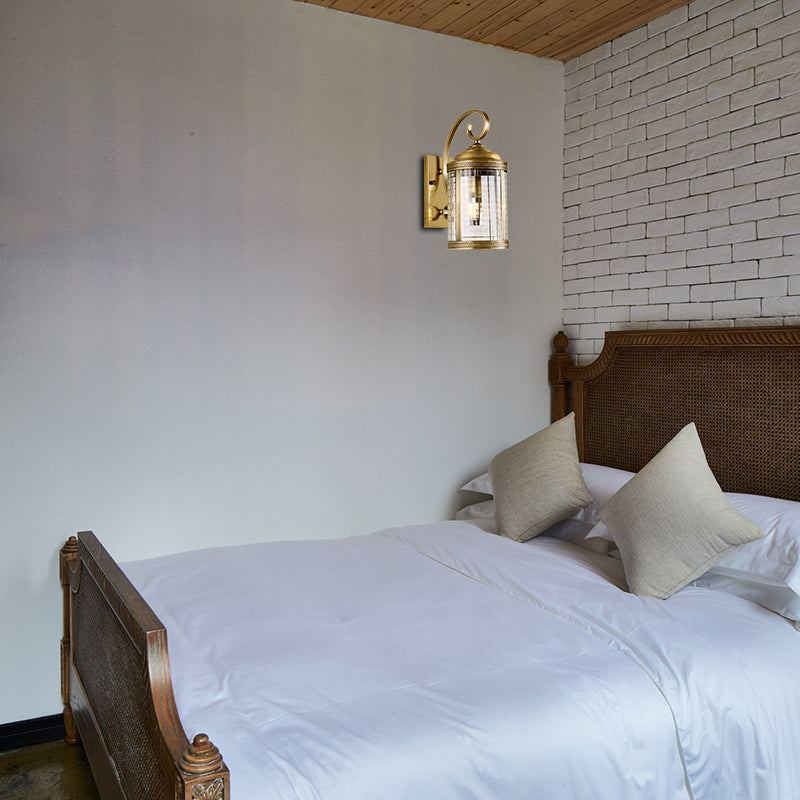 Traditional Gold Metal Birdcage Wall Mounted Light With Clear Glass Shade For Porch