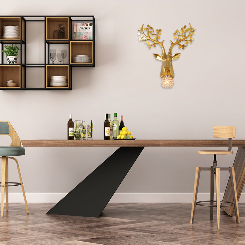 Golden Elk Sconce: Lodge Style Resin Wall Lamp With Crystal Shade 1 Light 15/22.5 W - Ideal For