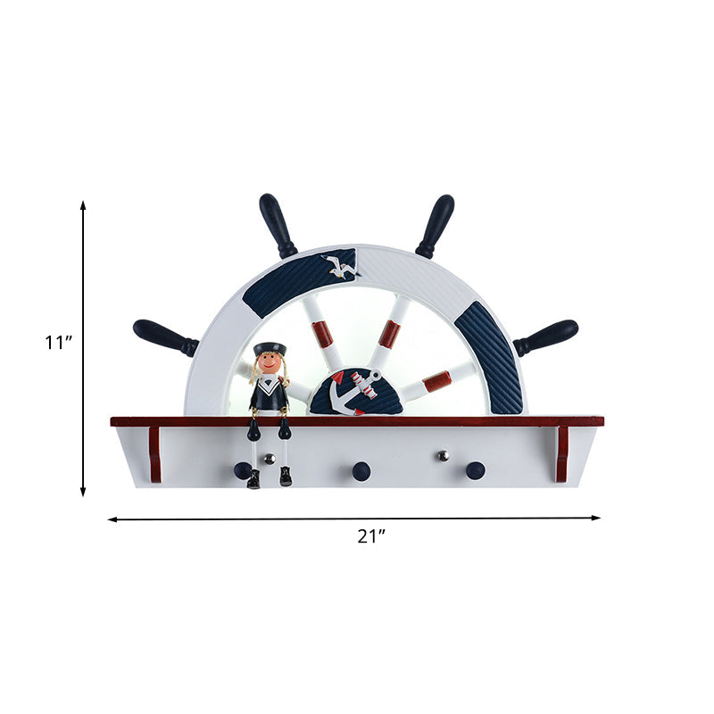 Kids Acrylic Led Bedside Wall Mount Lamp In White And Blue With Rudder Sconce Design White/Warm