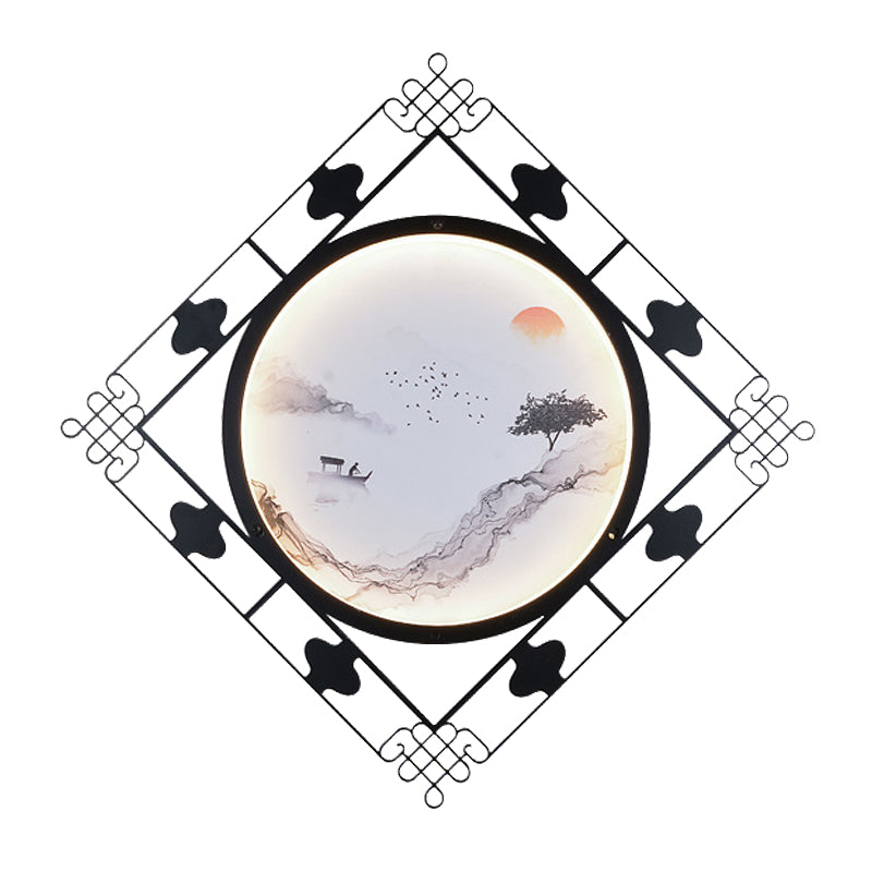 Led Wall Lights For Living Room With Black Chinese Mount And Rhombus Frame