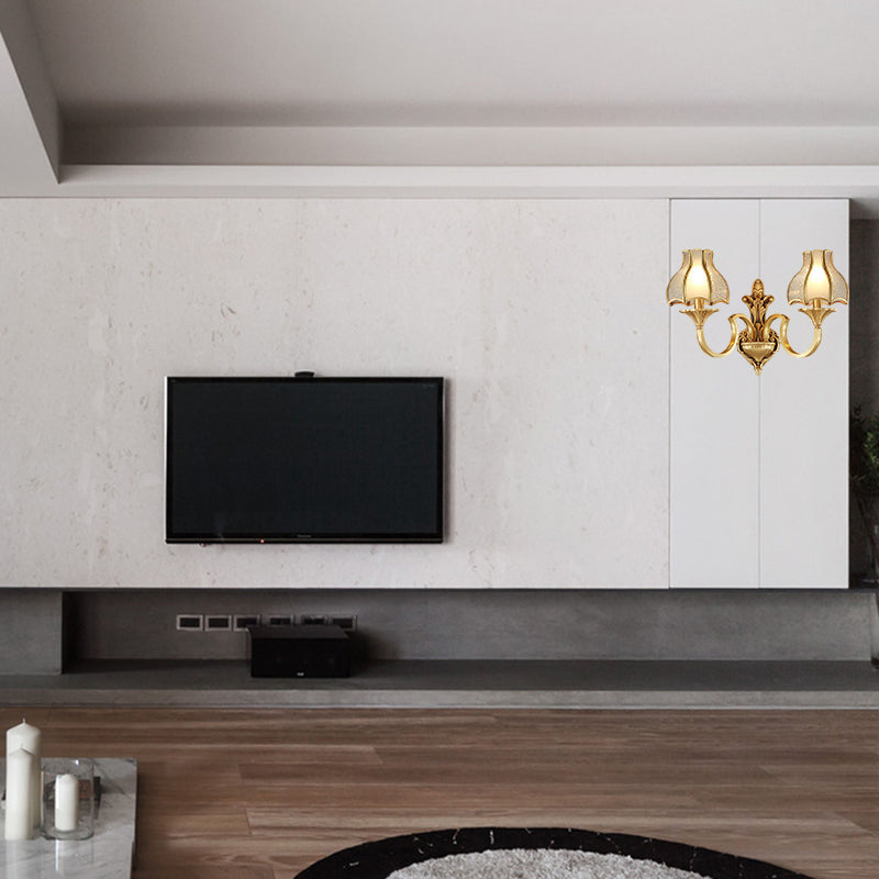 Traditional Brass Wall Sconce With Curving Design - 1/2 Light Fixture For Bedroom