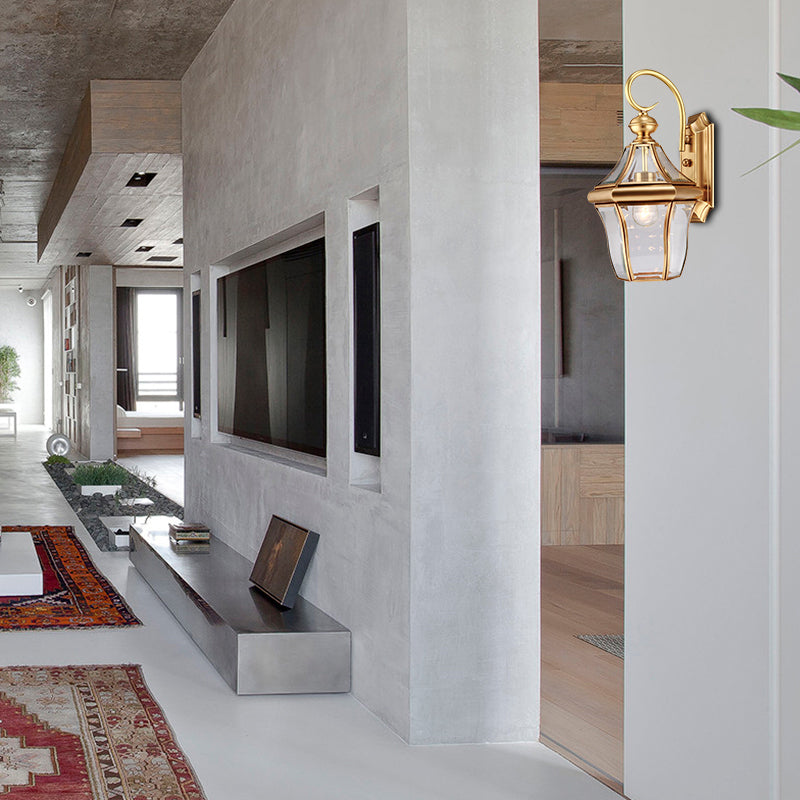Metal Gold Wall Sconce Lantern - Traditional 1-Light Fixture For Living Room