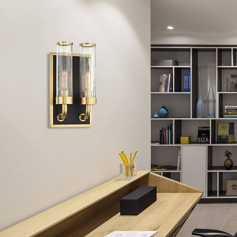 Vintage Brass Wall Sconce With Clear Crackle Glass Shade - Metal Tube Lighting For Dining Room (1/2