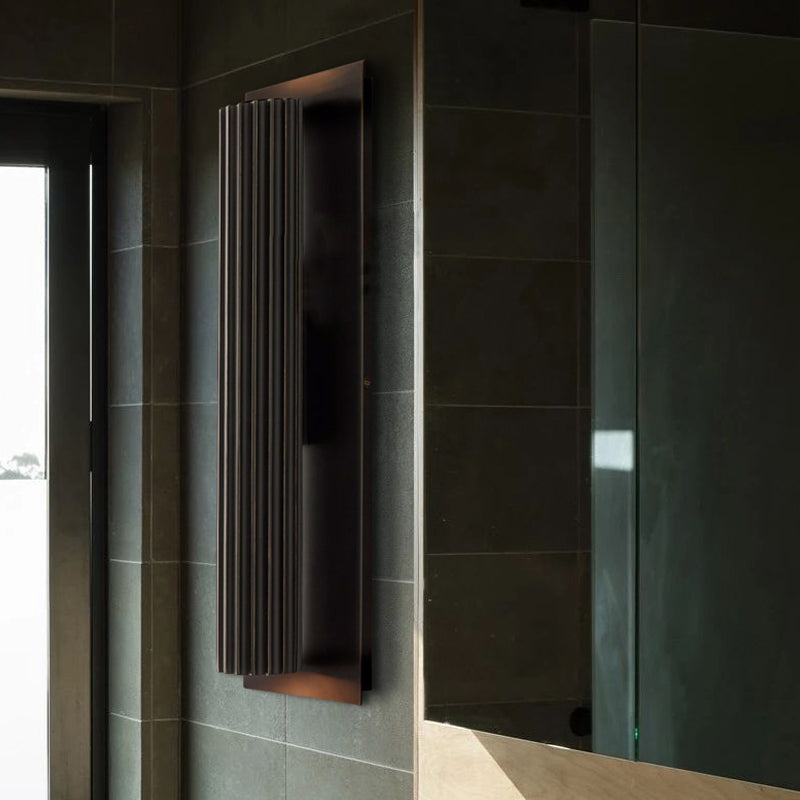 Moderne gerippte Wandleuchte mit 2 metallischen gold-/schwarzen Röhrenköpfen