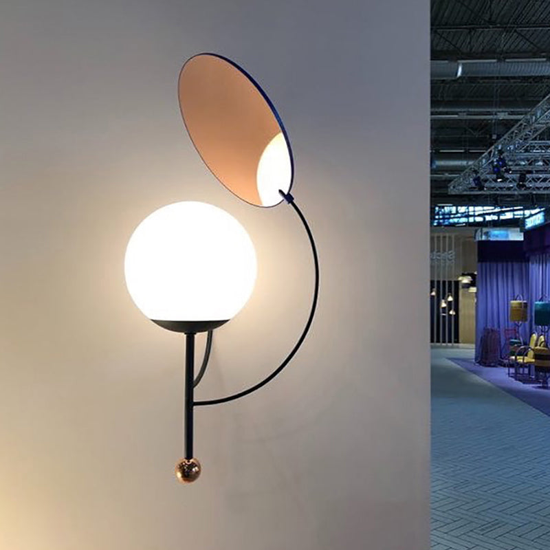 Nordische Wandleuchte aus Opalglas mit rundem Spiegel – 1-Kopf-Schlafzimmerleuchte (schwarz)