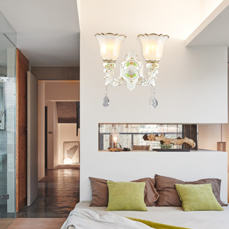 Traditional Opal Glass Flower Wall Sconce Light - White 1/2 Lights Living Room Fixture 1 /