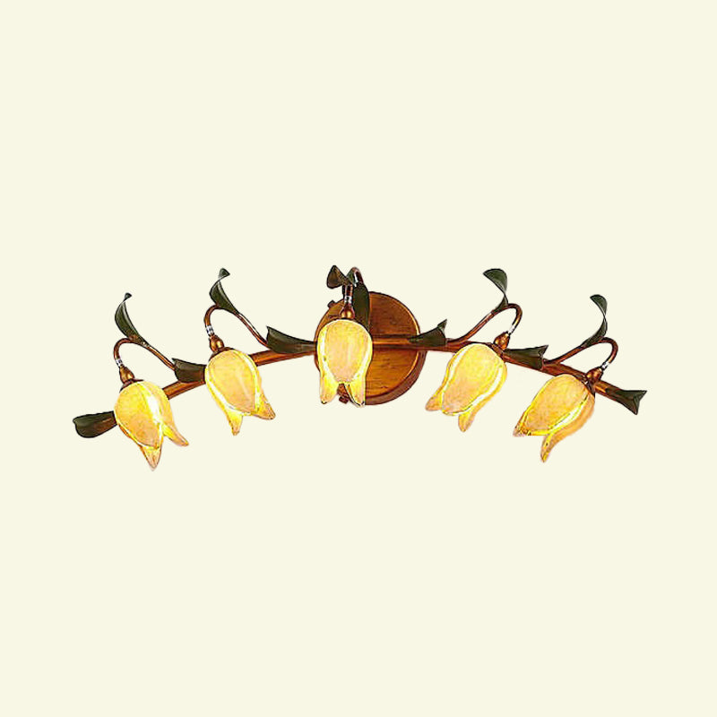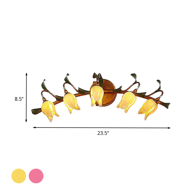 Tulip Vanity Lamp - 5-Headed Led Wall Sconce In Red/Yellow For Bathroom Yellow