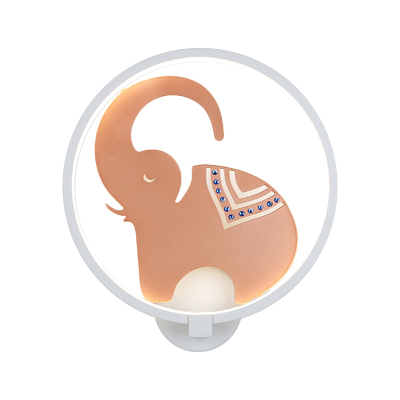 Postmodern Circular Metallic Mural Lamp: Led Elephant Wall Lighting Fixture In