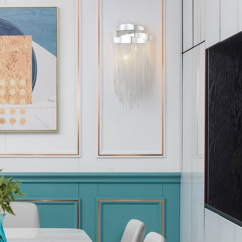 Moderne Wandleuchte mit silberner Metallkette und 3 Wandleuchten für das Schlafzimmer