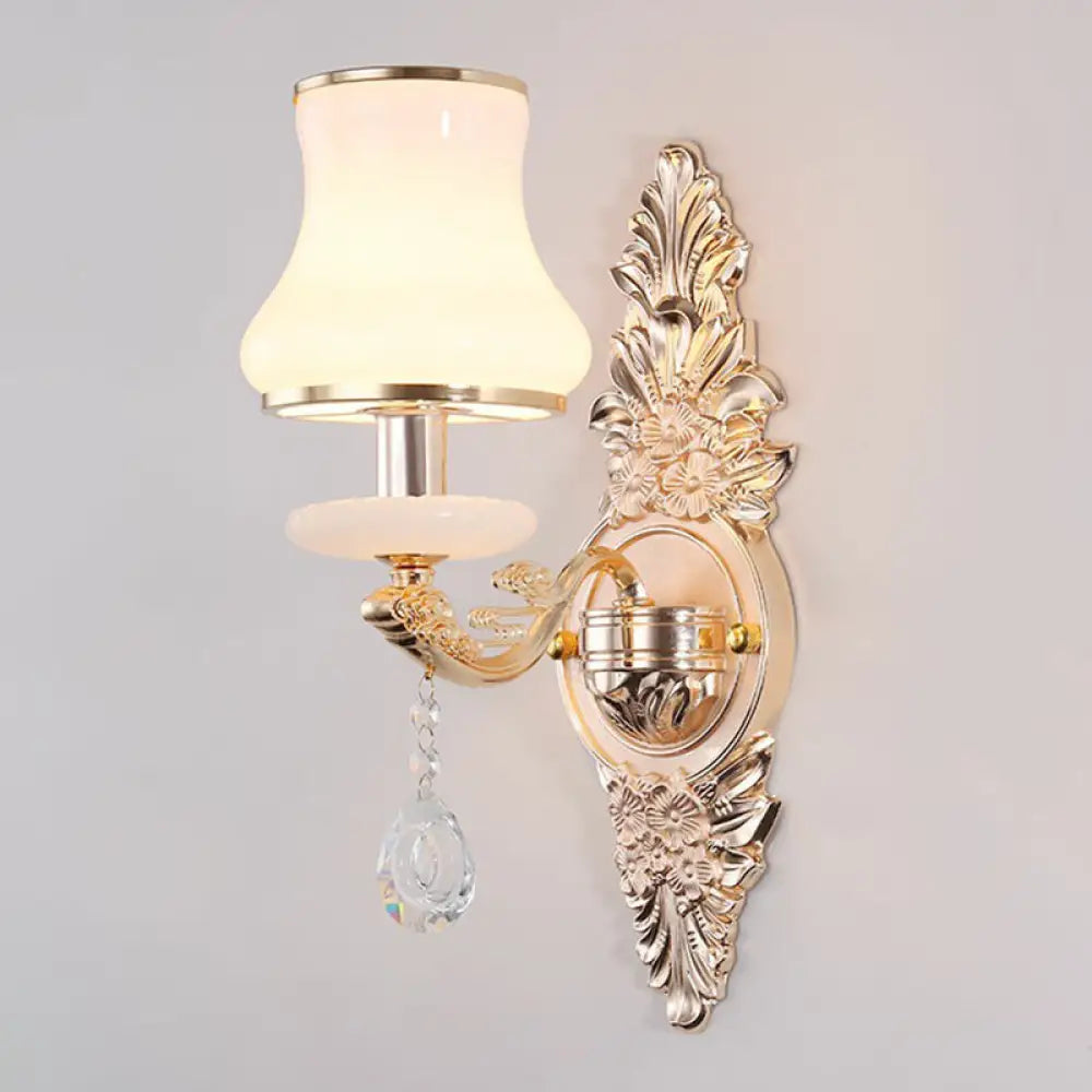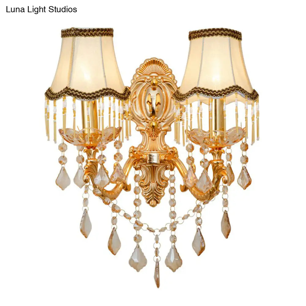 Viktorianische Wandleuchte aus Metall mit Kerzenlicht, Schirm und Kristalldekor - 1 / Gold / Kürbis ist auf Lager und wird versandt, sobald es wieder verfügbar ist