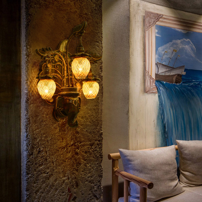 Country Stairway Wall Sconce With Melon Bamboo Shade In Brown - Lighting Fixture 3 /