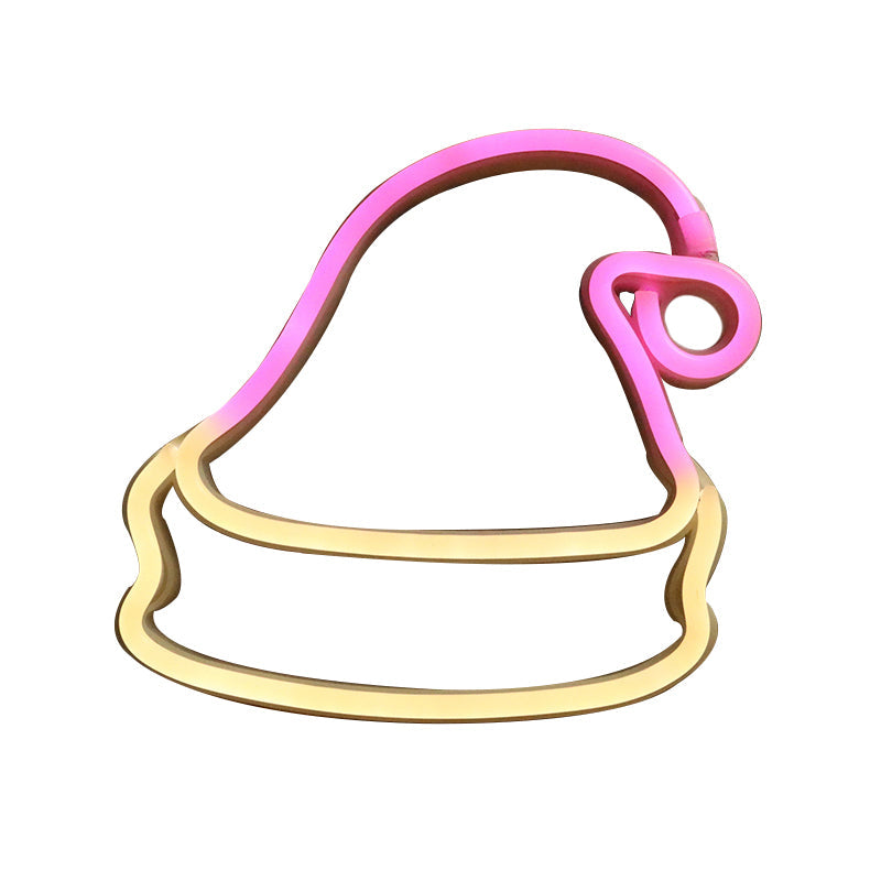 LED-Wandleuchte mit weißer Weihnachtsmütze: Festliches, batteriebetriebenes Neon-Dekor