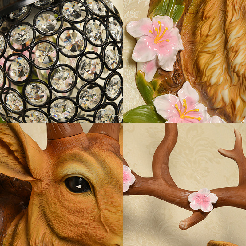 Traditional Resin Deer Wall Sconce Light With Teardrop Crystal Shade - White/Yellow 1 16.5/23 W