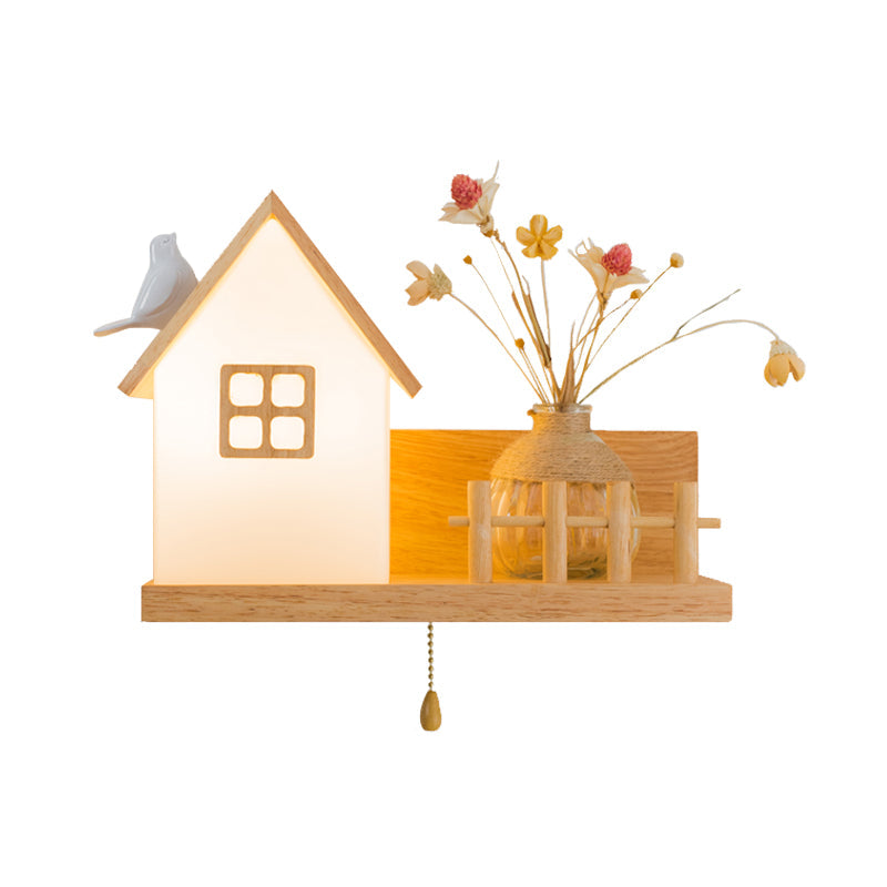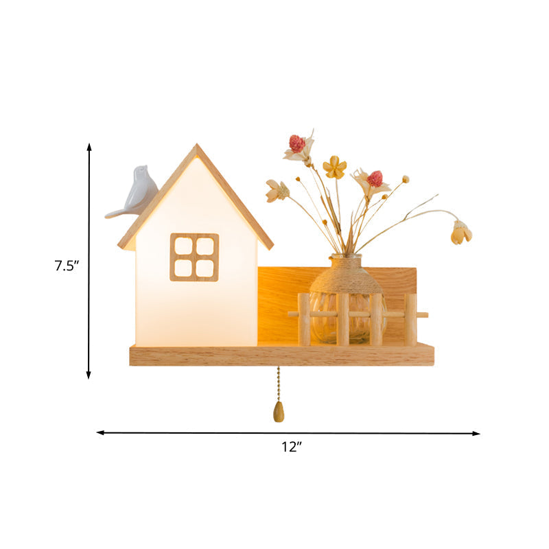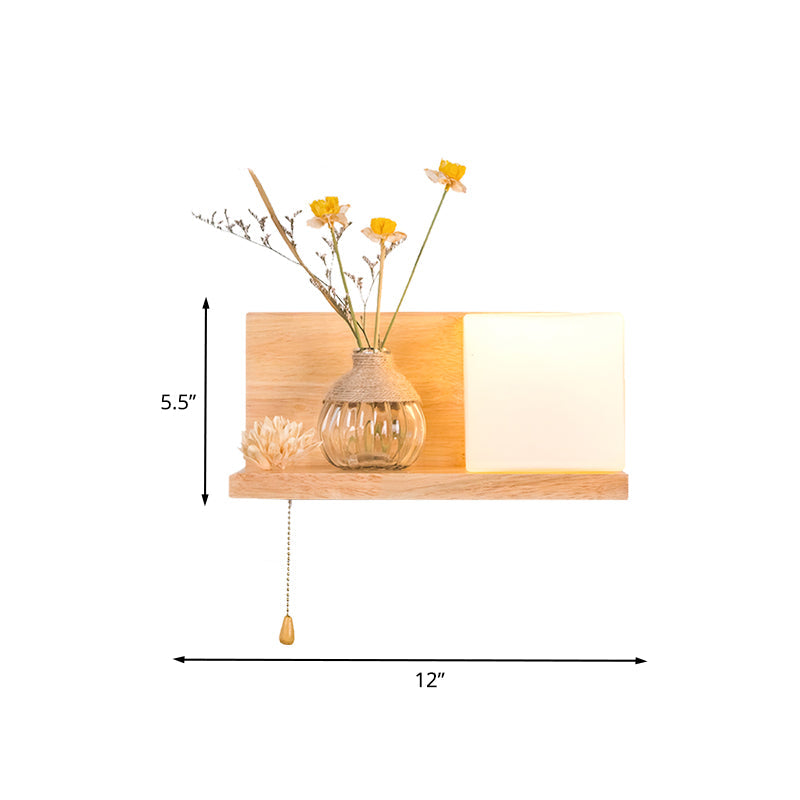 Nordic Milky Glass Wall Sconce With Wood Spiral/Cylinder Design - Mounted Light Fixture