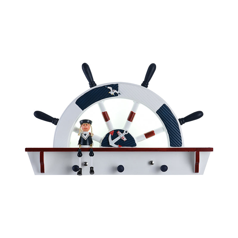 Blue Sailor Mediterranean Led Wall Sconce With Wood Rudder Flush Mount