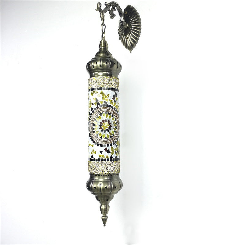Diese wunderschöne Wandleuchte verleiht jedem Raum einen Hauch von Klasse. Die Lampe im traditionellen Stil besteht aus Glas. Sie ist in verschiedenen Farben erhältlich, darunter Rot, Gelb und Blau. Die Lichtintensität kann auf 110–120 V oder 220–240 V eingestellt werden. Die Lampe ist mindestens 63 cm hoch und 28 cm breit.