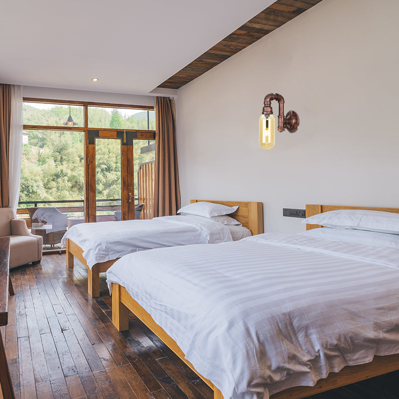 Industrielle Wandleuchte aus Bernsteinglas mit ovalem Kupferschirm – Schlafzimmerleuchte, 9,5"/10"/12" H