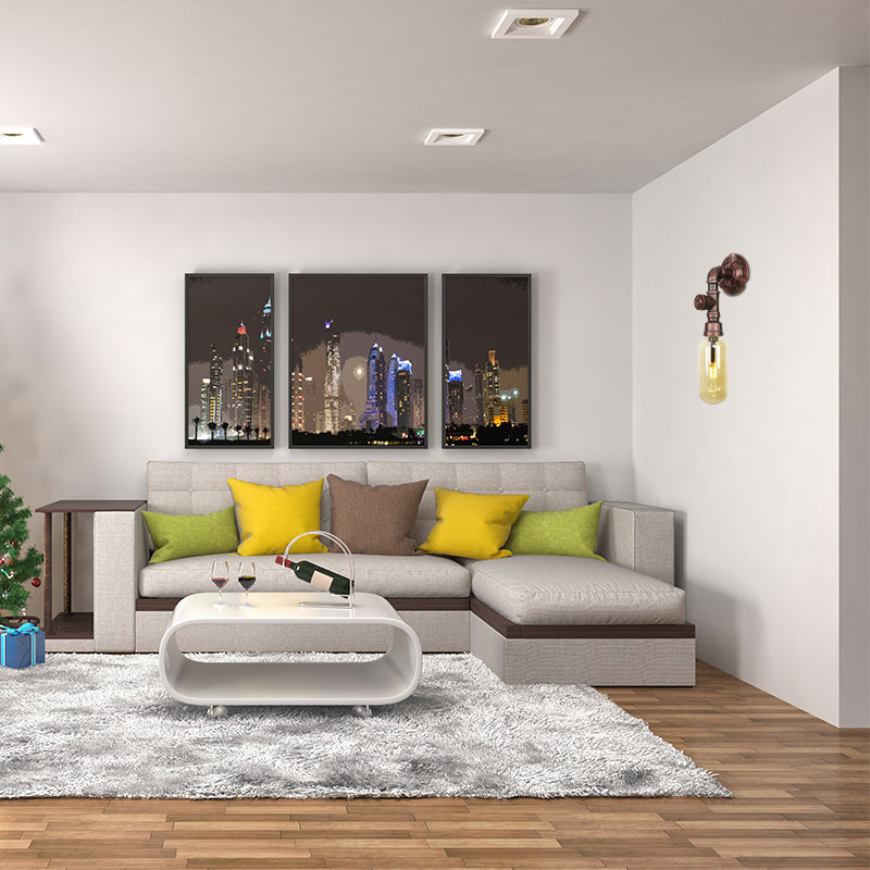 Diese Wandleuchte ist eine tolle Ergänzung für jeden Raum. Sie hat eine verwitterte Kupferoberfläche mit einem bernsteinfarbenen Glasschirm. Die Lampe ist mit LED-Beleuchtung ausgestattet und verfügt über eine direkt verkabelte Stromversorgung. Sie eignet sich perfekt für Schlafzimmer, Badezimmer und andere Räume in Ihrem Zuhause.