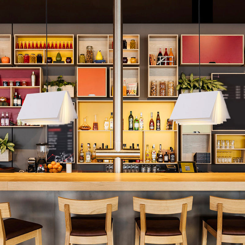 Art Deco Metal Pendant Light: Creative Books Hanging Lamp With 1 Light - Indoor Lighting White