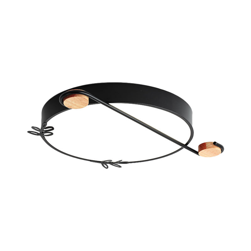 Wide Drum Metallic Flushmount Led Ceiling Light For Bedroom - Simple Black/Grey/White Design