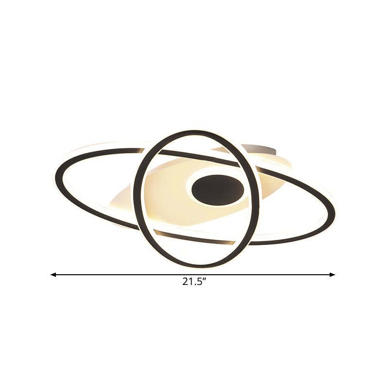 18"/21,5" Schwarze, gestapelte, ovale, halbbündige, moderne Acryl-Deckenleuchte mit LEDs – Warmweißes Licht