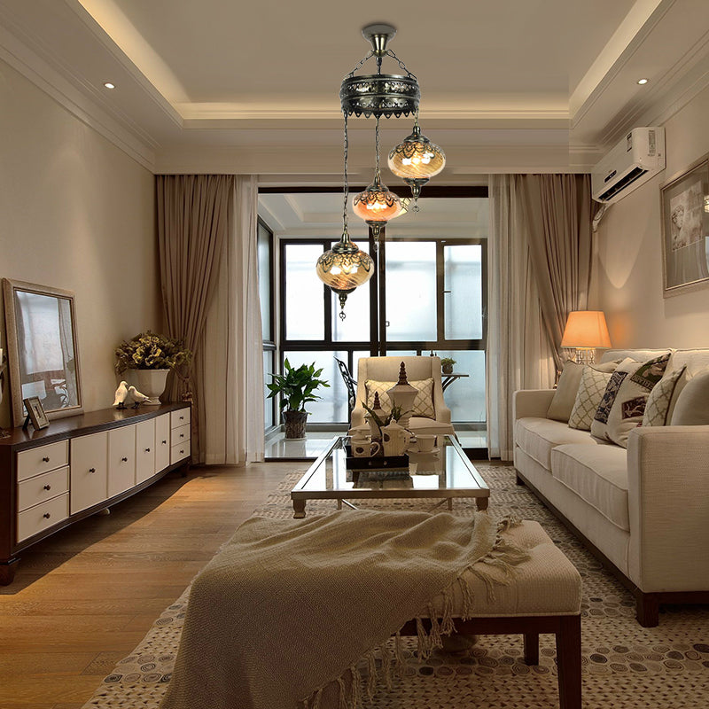 Amber Swirl Glass Pendant Light - Traditional Bronze Oval Chandelier For Living Room 3 /