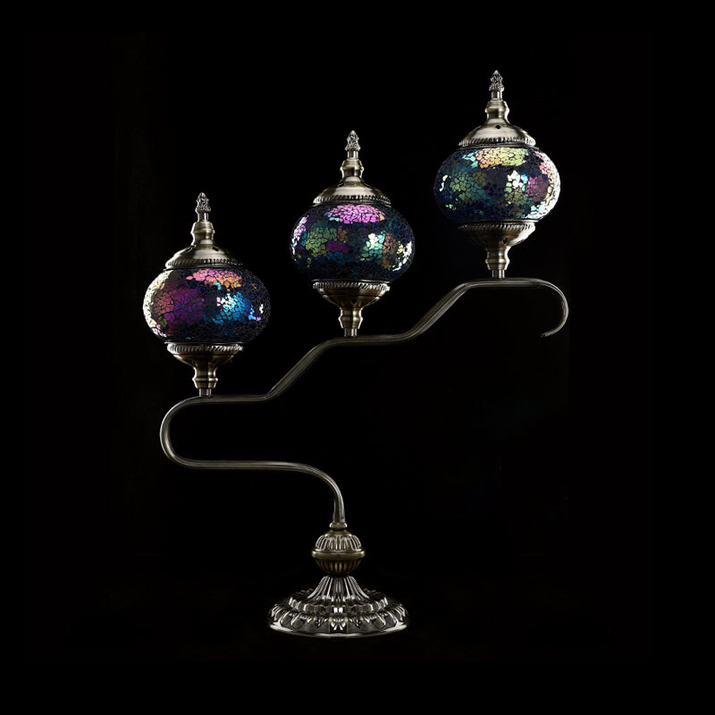 Mediterranean Stained Glass Night Light With 3 Heads - Red/Orange/Blue Tower Design Dark Purple