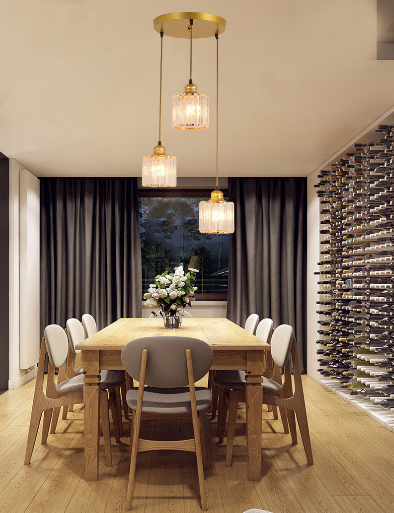 Industrial Ribbed Glass Hanging Ceiling Light With 3 Cylinder Shades - Perfect For Restaurants Gold