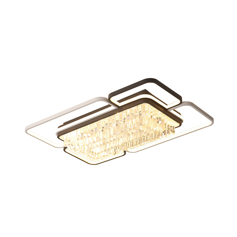 35,5"/41" W Geometrische Unterputz-LED-Wohnzimmerleuchte aus Kristall – Schwarz & Weiß, stufenloses Dimmen, Fernbedienung