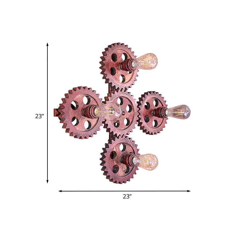 Antique Dark Rust Wrought Iron Sconce Lamp - 4 Lights Gear Wall Lighting For Restaurants