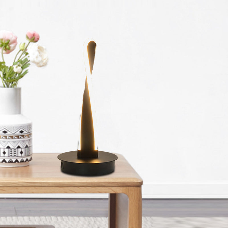 Modern Led Night Table Lamp - Acrylic Twisted Task Lighting In Yellow/Black With Metal Base