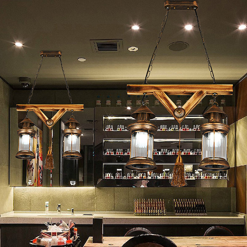 Bronze Coastal Glass Lantern Pendant Light - 4-Light Island Fixture