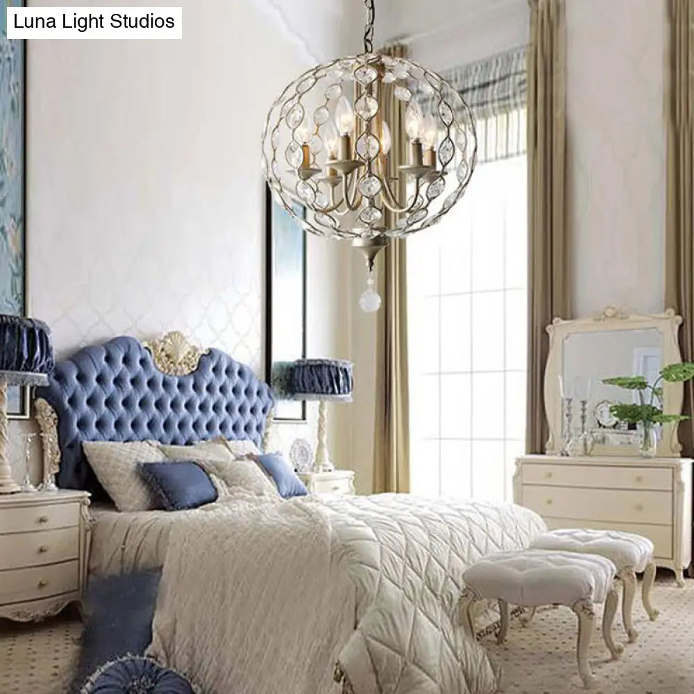Dieser Kronleuchter hat einen Metallrahmen und eine gealterte Silberoberfläche. Der Kronleuchter hat sechs Lichter, jedes Licht ist in eine Kugel aus klarem Kristall eingefasst. Die Metallkette ist verstellbar, sodass Sie den Kronleuchter auf die gewünschte Länge einstellen können. Der Kronleuchter verwendet E12/E14-Glühbirnen (nicht im Lieferumfang enthalten). Dieser Kronleuchter verleiht jedem Raum einen Hauch von Eleganz.