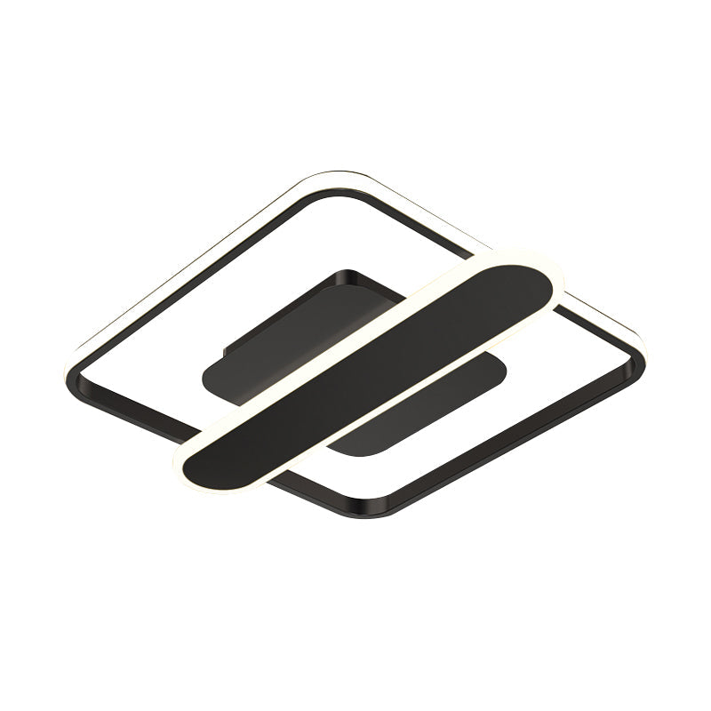 Contemporary Aluminum Square Frame Led Ceiling Lamp - Black/Gold/White 16.5/20.5 Inches Wide Black