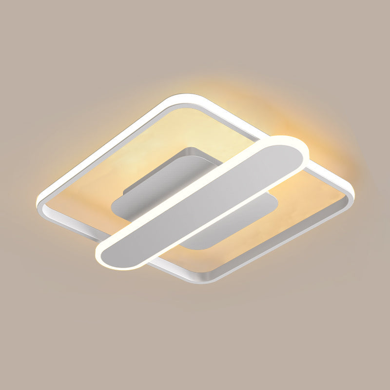 Contemporary Aluminum Square Frame Led Ceiling Lamp - Black/Gold/White 16.5/20.5 Inches Wide White
