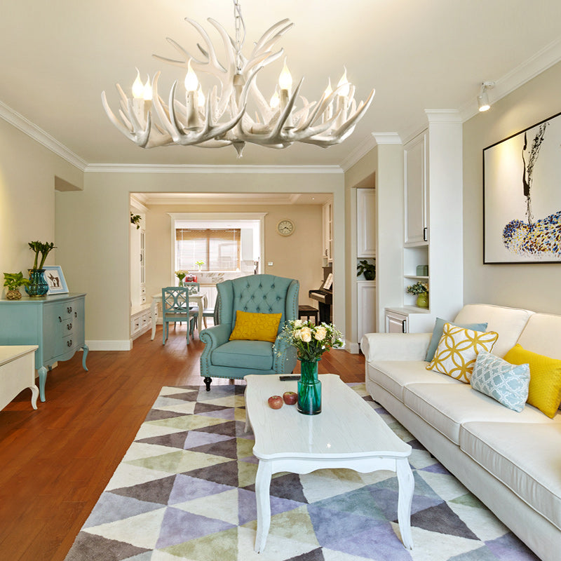 Rustic Resin Antler Chandelier - Artfully Crafted Hanging Light With Exposed Bulb Design 8 / White