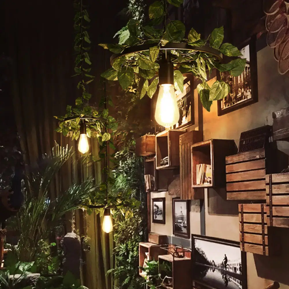 Bare Bulb Industrielle Metall Pendelleuchte - Grüne Pflanze LED Hängelampe für Restaurants