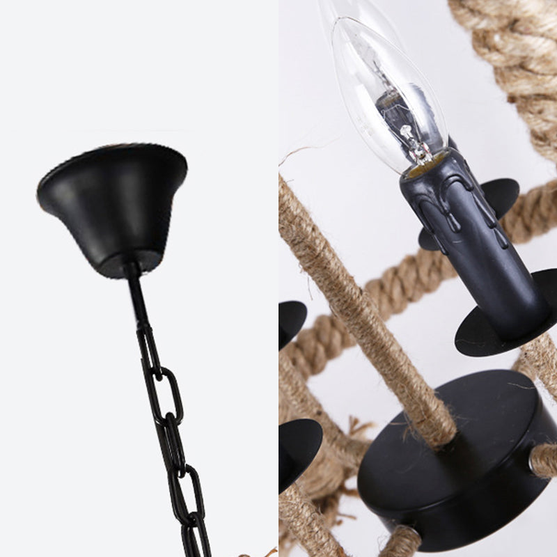 Beigefarbener 4-flammiger Kronleuchter: Traditionelle Pendelleuchte mit Seilzylinder für das Esszimmer