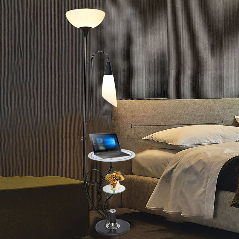 Beveled Crystal Tree Floor Lamp - Floral 2-Head Design Black/White Rural Style Black