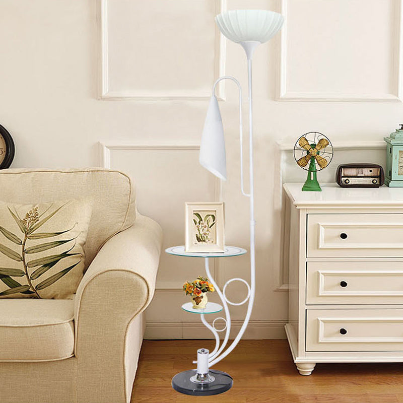 Beveled Crystal Tree Floor Lamp - Floral 2-Head Design Black/White Rural Style White