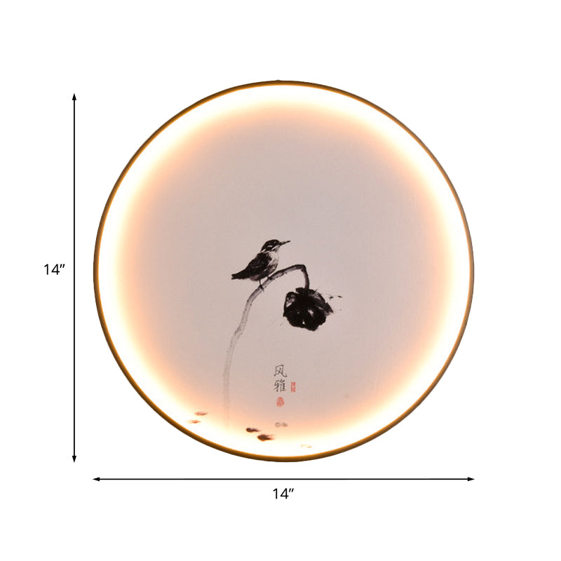 LED-Wandleuchte im chinesischen Stil mit Vogel- und Lotus-Design für das Esszimmer – schwarze Unterputz-Wandleuchte
