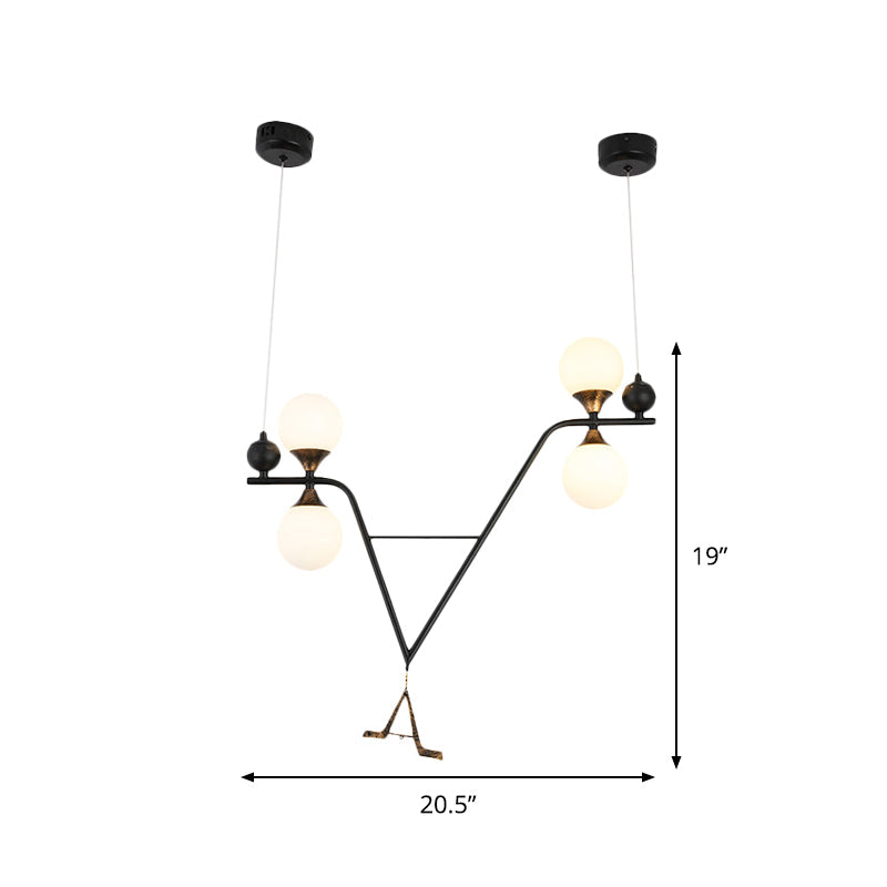 Modern Black A/V-Letter Ceiling Chandelier With 4 Iron Led Pendant Lights