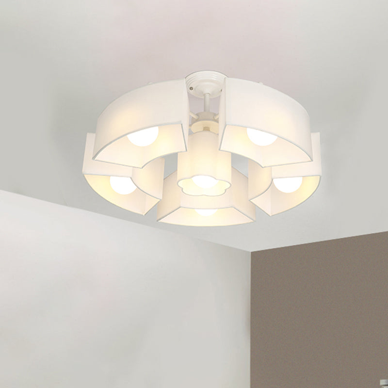 Contemporary Black/White Curved Block Flushmount Light With 6 Fabric Semi Mounts For Living Room
