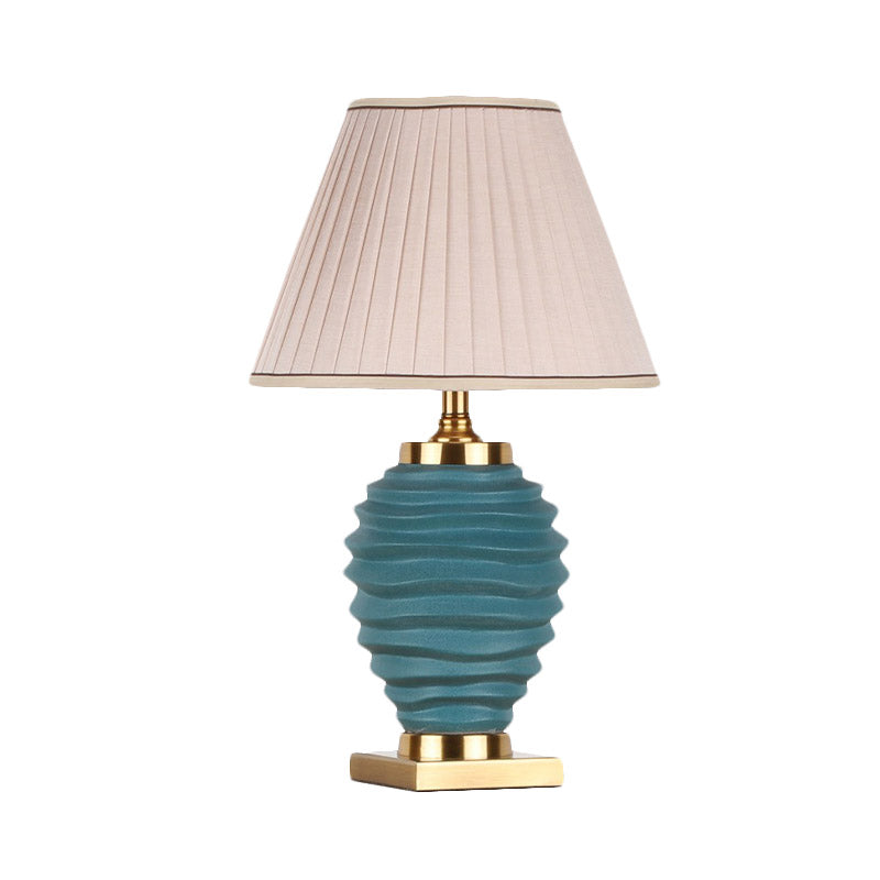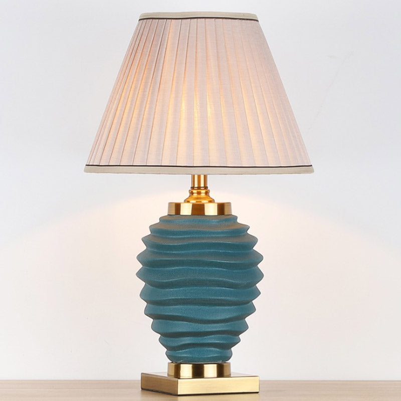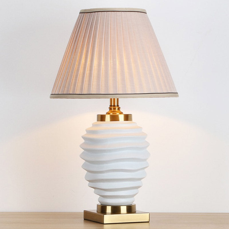 Nachttischlampe mit gestufter Vase – Traditionelle Nachttischlampe aus Keramik mit einem Kopf, Schwarz/Weiß, mit plissiertem Stoffschirm