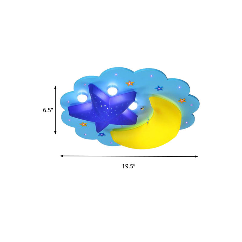 Blue Star Moon Cartoon Wood Ceiling Lamp For Kids Bedroom