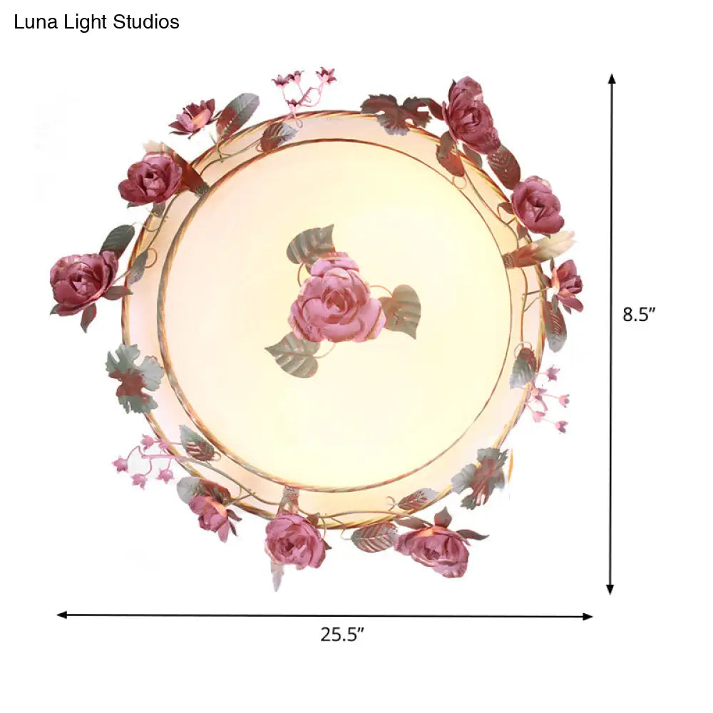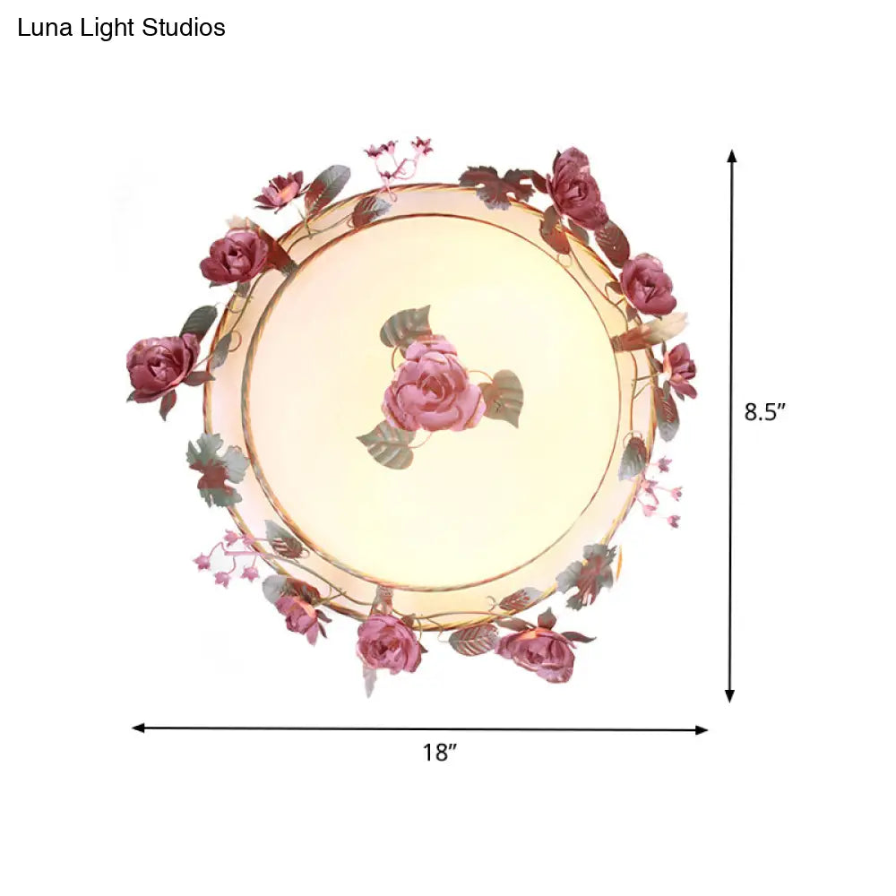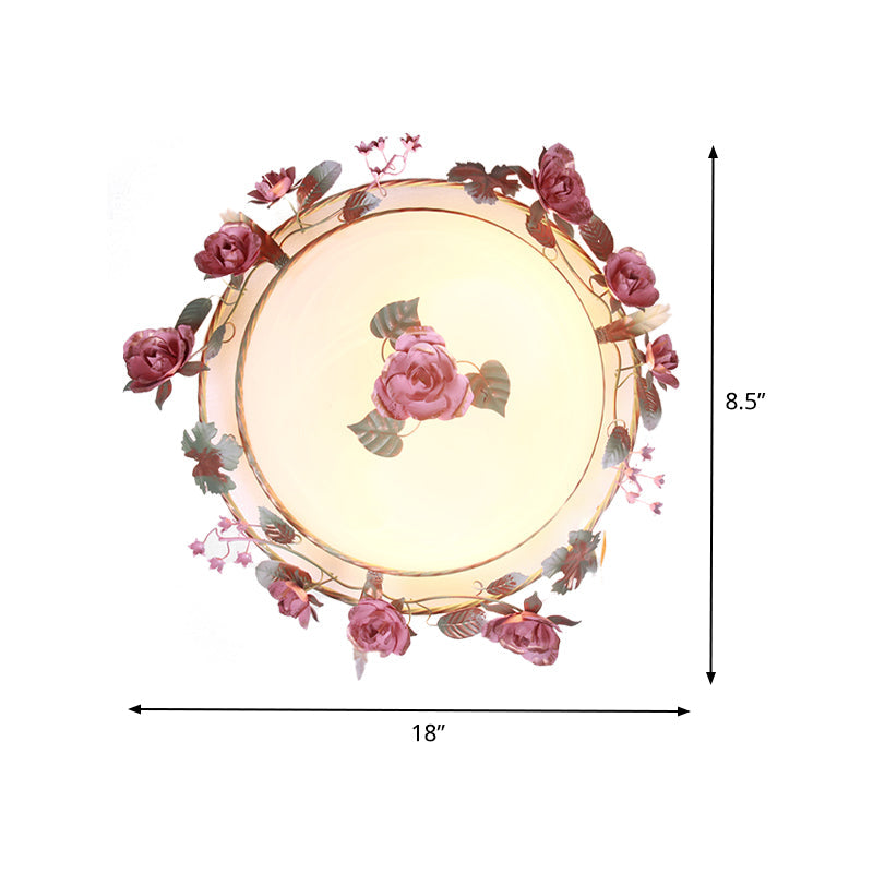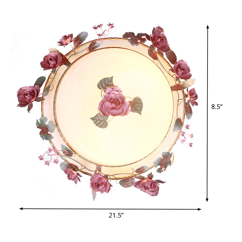Rustikale Deckenleuchte aus Metall mit Blumendekor – Unterputzleuchte für Esszimmer – Weiß – 2/3/4 Glühbirnen