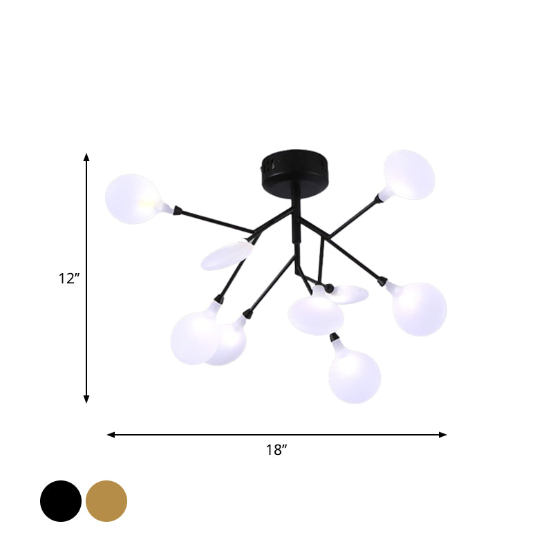 Bei diesem Produkt handelt es sich um eine verzweigte, modernistische LED-Deckenleuchte aus Metall für das Schlafzimmer. Die Deckenleuchte ist aus Metall gefertigt und in den Farben Schwarz und Gold gehalten. Der moderne Stil ist flächenbündig. Die Form erinnert an ein Blatt oder eine Blase. Die Spannung beträgt 110–120 V oder 220–240 V. Der Lampensockel ist G4. Die Leuchte ist LED.